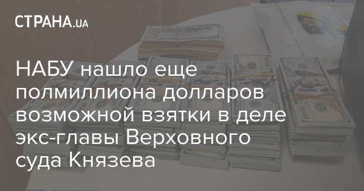 НАБУ нашло еще полмиллиона долларов возможной взятки в деле экс-главы Верховного суда Князева
