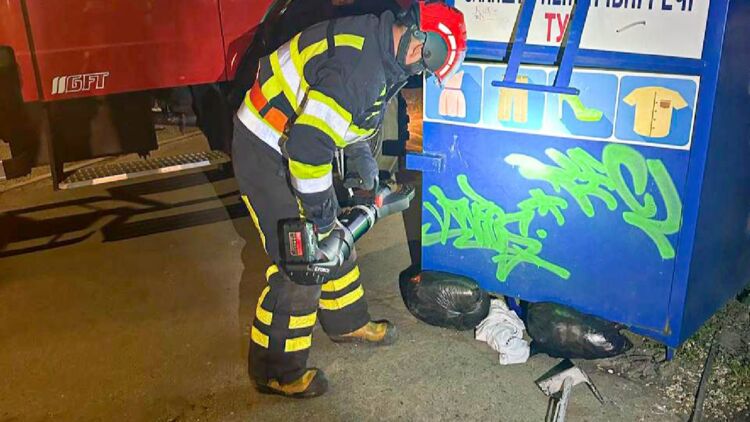 Киевские спасатели вытащили мальчика, который залез в контейнер для сбора гуманитарной помощи. Фото