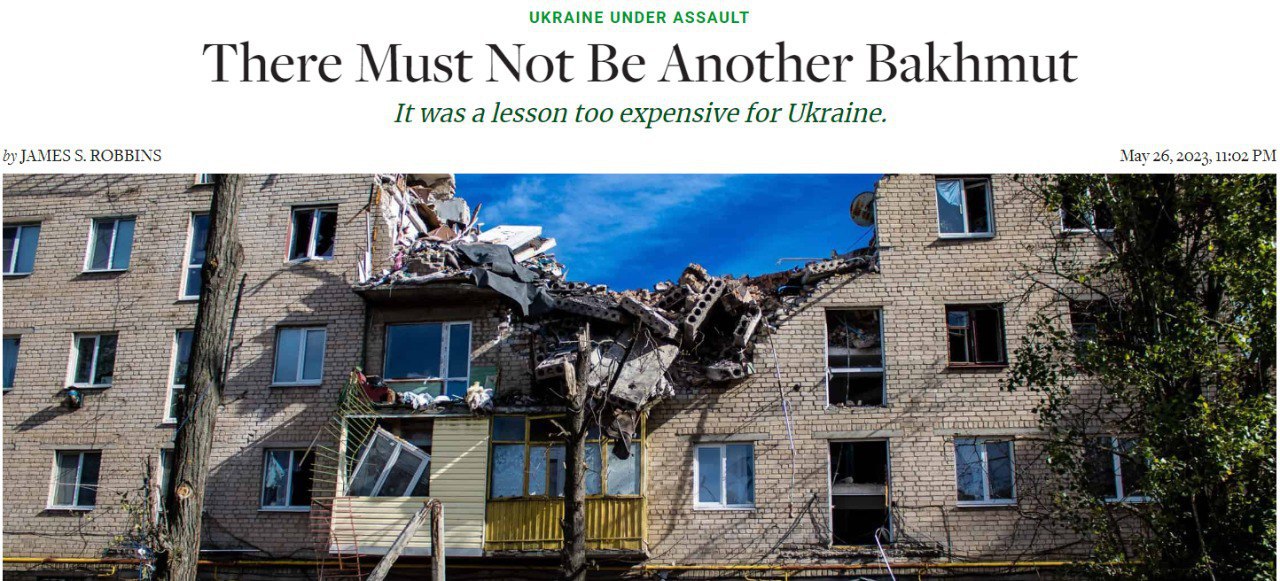 Автор материала Джеймс С. Роббинс (декан академического факультета Института мировой политики) пишет, что борьба за Бахмут представляла собой "битву на истощение в духе Вердена, на победу в которой у Украины было мало шансов".