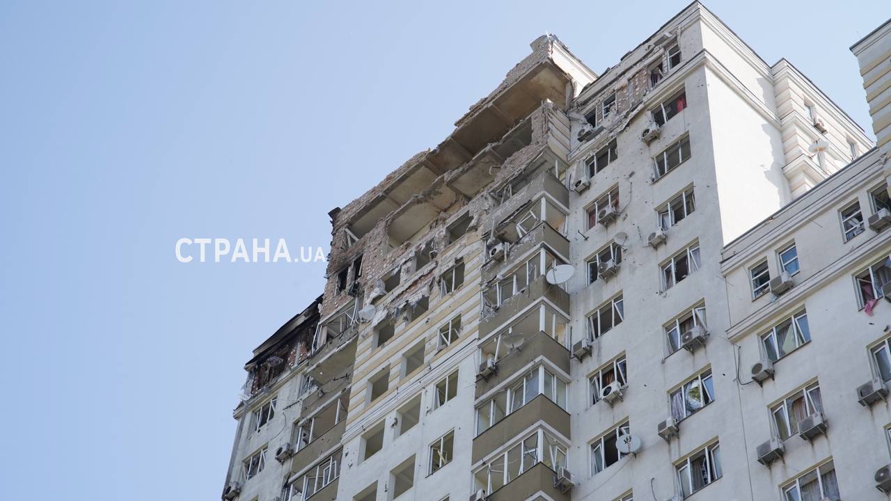 10.39 «Страна» поговорила с жительницей пострадавшего от падения обломка беспилотника дома в Голосеевском районе. Ее зовут Наталья. Проживает на 9 этаже, 24-этажного дома.