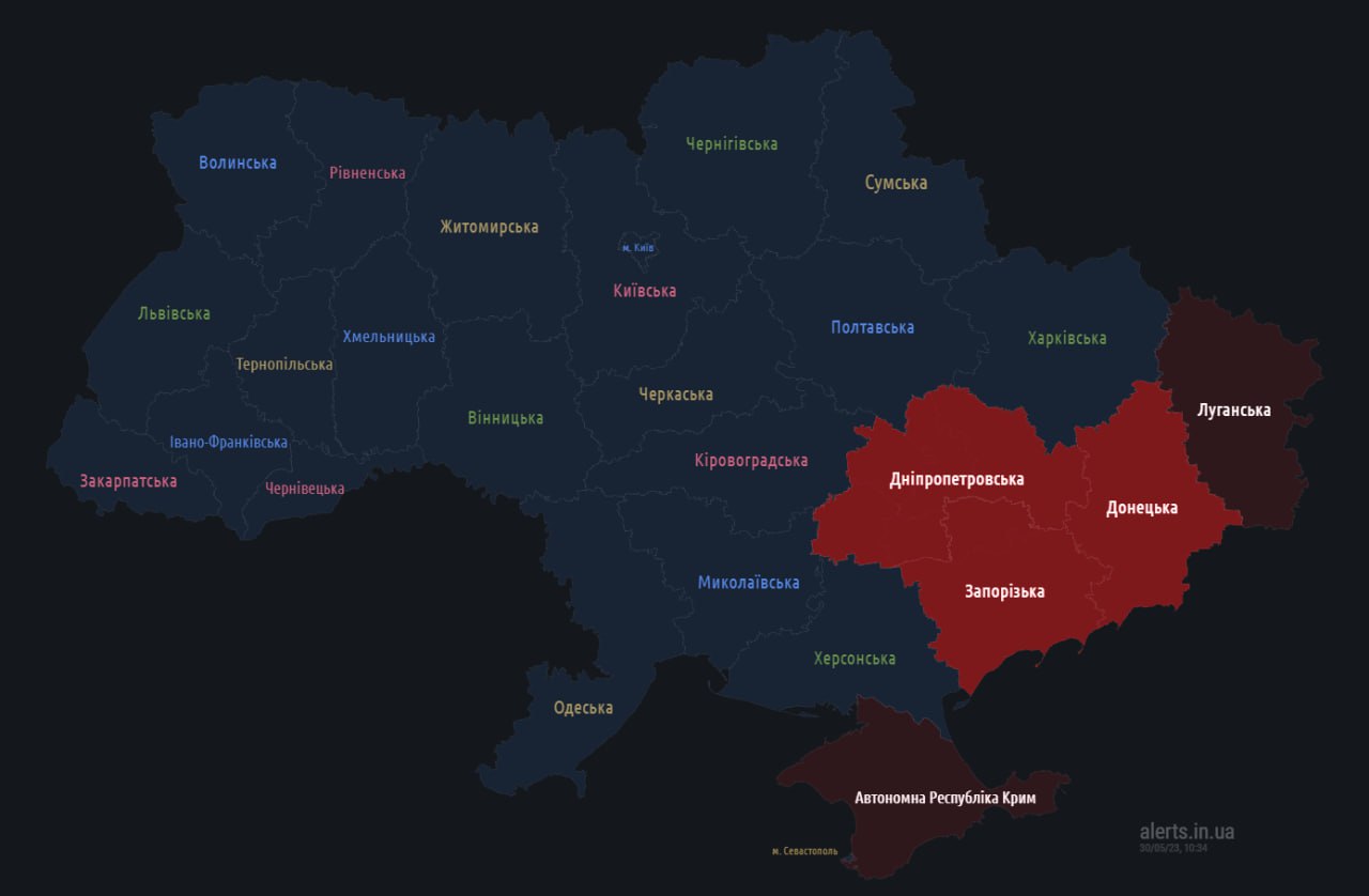 10.36 Воздушная тревога объявлена на востоке.