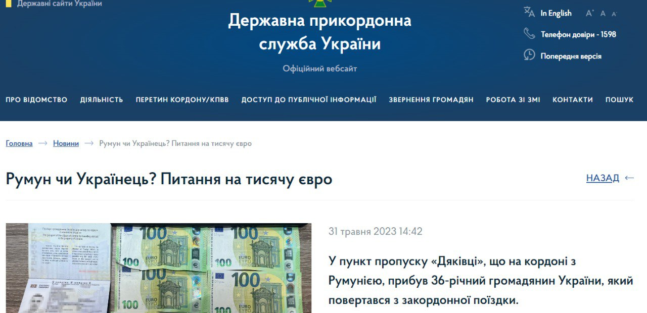 На Буковине 36-летний мужчина предлагал 1000 евро пограничникам за беспрепятственный возврат в Украину. Местный житель еще в прошлом году уехал за границу с помощью паспорта другой страны, а теперь решил вернуться домой.