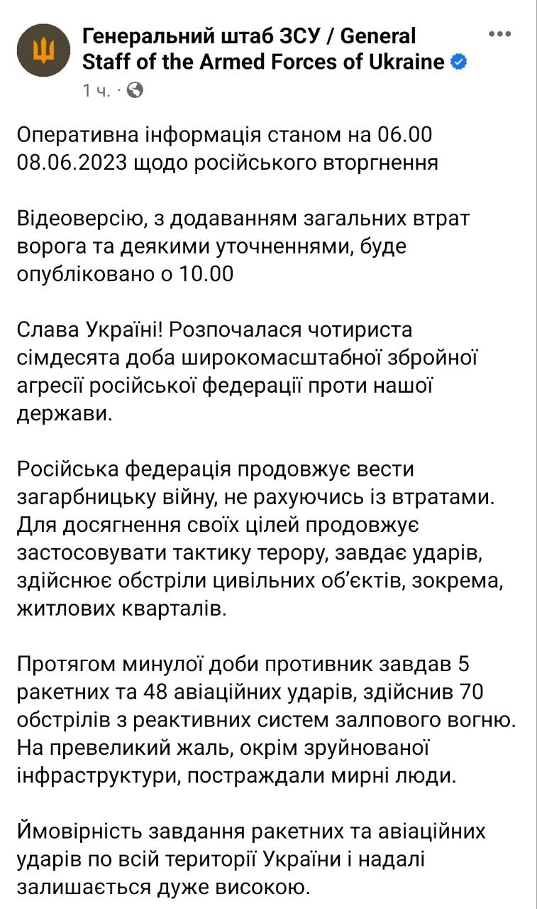 В четверг, 8 июня, в Украине продолжается 470-й день войны с Россией.
