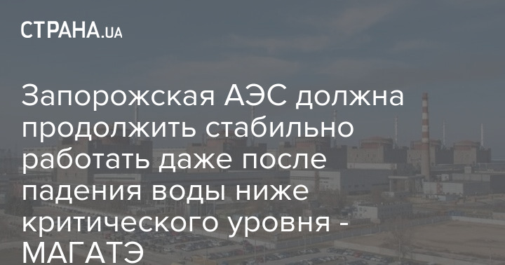 Запорожская АЭС должна продолжить стабильно работать даже после падения воды ниже критического уровня - МАГАТЭ