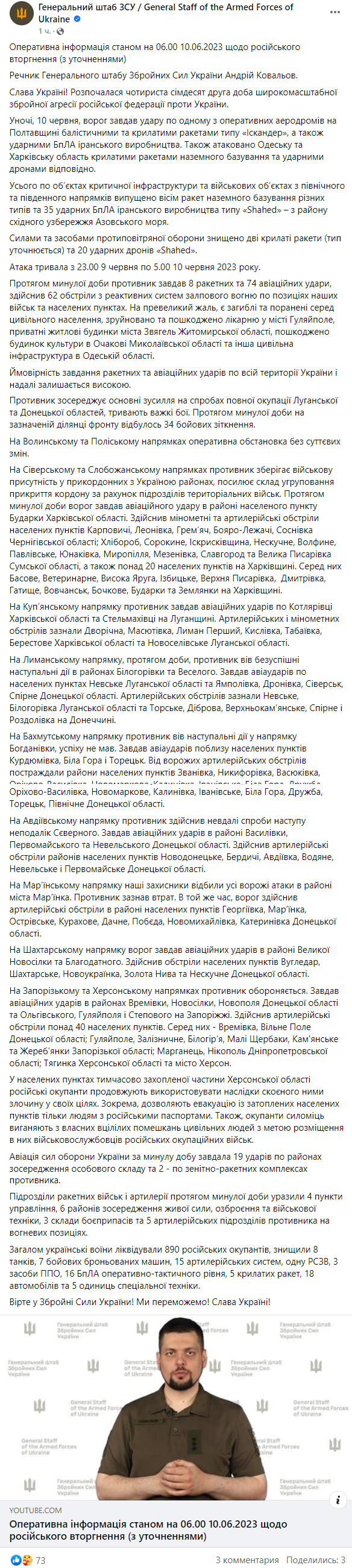 Что происходит на фронте 10 июня. Сводка Генштаба ВСУ