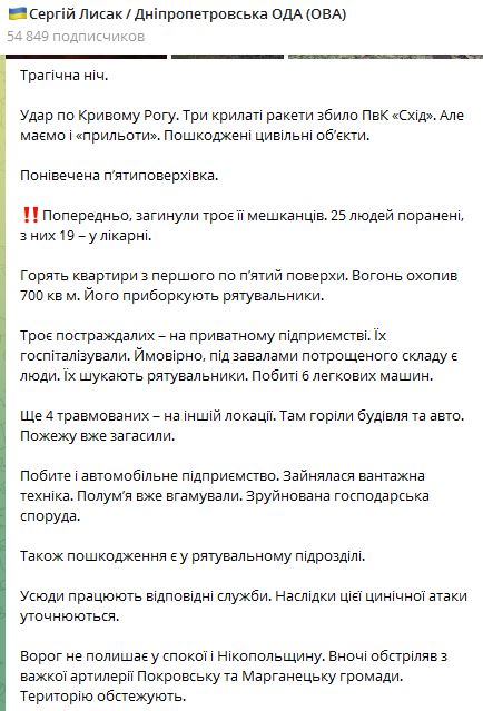 Ночной удар по Кривому Рогу. Горит пятиэтажка, есть погибшие и люди под завалами