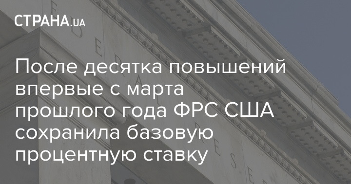 После десятка повышений впервые с марта прошлого года ФРС США сохранила базовую процентную ставку