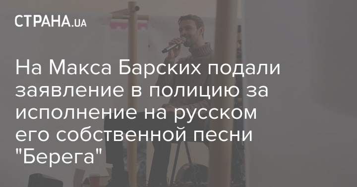 Против украинского поп-певца Макса Барских (настоящее имя - Николай Бортник) после концерта в Кременчуге Полтавской области написали заявление в полицию, потому что он на нем исполнил песню на русском языке "Берега".