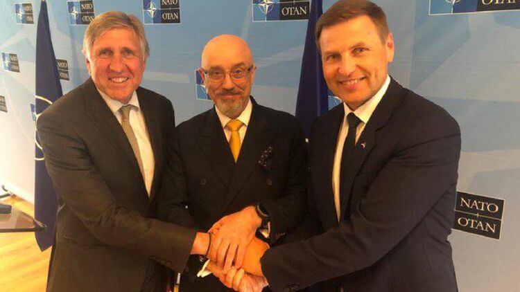 Министр обороны Украины Алексей Резников (в центре) на встрече "Рамштайн". Фото: Twitter/oleksiireznikov