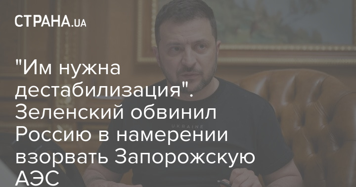"Россия хочет подорвать АЭС. Потому что, так же как и с дамбой, они не заинтересованы в безопасности в Украине. Им постоянно нужна дестабилизация здесь, и они хотят, чтобы мир давил на Украину для нужного им варианта прекращения этого конфликта", - сказал Зеленский.