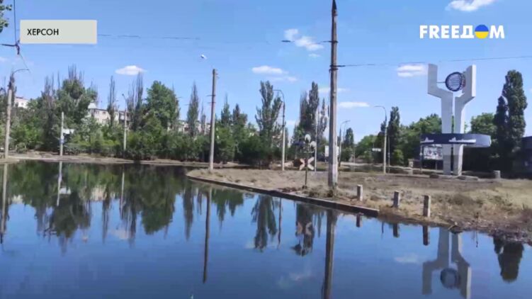 В Херсоне еще остаются затопленные участки улиц. Скриншот видео