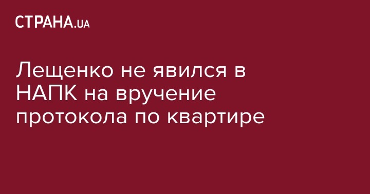 Нардеп Сергей Лещенко (БПП) не явился лично в НАПК на вручение протокола о совершении им административного правонарушения при покупке квартиры в центре Киева. Об этом он написал в Facebook.