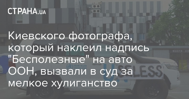 Киевского фотографа, наклеившего на машины ООН надпись "Бесполезные", вызвали в суд по административной статье - мелкое хулиганство.