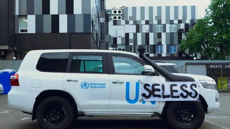 На киевской парковке разрисовали машины ООН. Фото: Telegram