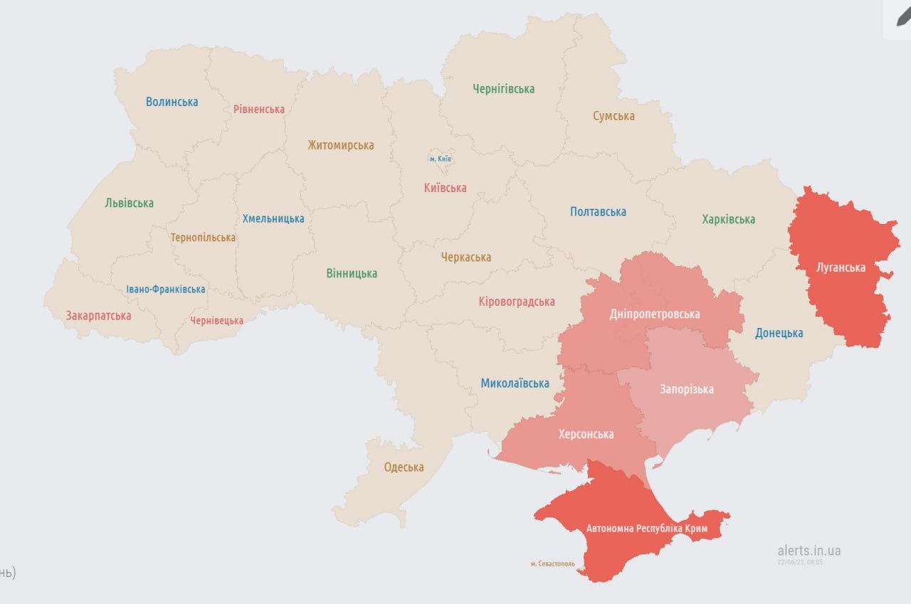 09.10 Тревога распространяется с юга Украины. Угроза применения баллистических ракет, по данным Воздушных сил.