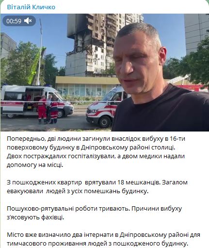 07.07 В Днепровском районе Киева произошел взрыв в жилой высотке. Пострадал 7-й этаж 16-этажного дома.