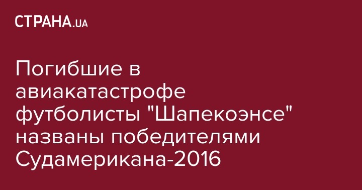 Погибшие в авиакатастрофе футболисты "Шапекоэнсе" названы победителями Судамерикана-2016