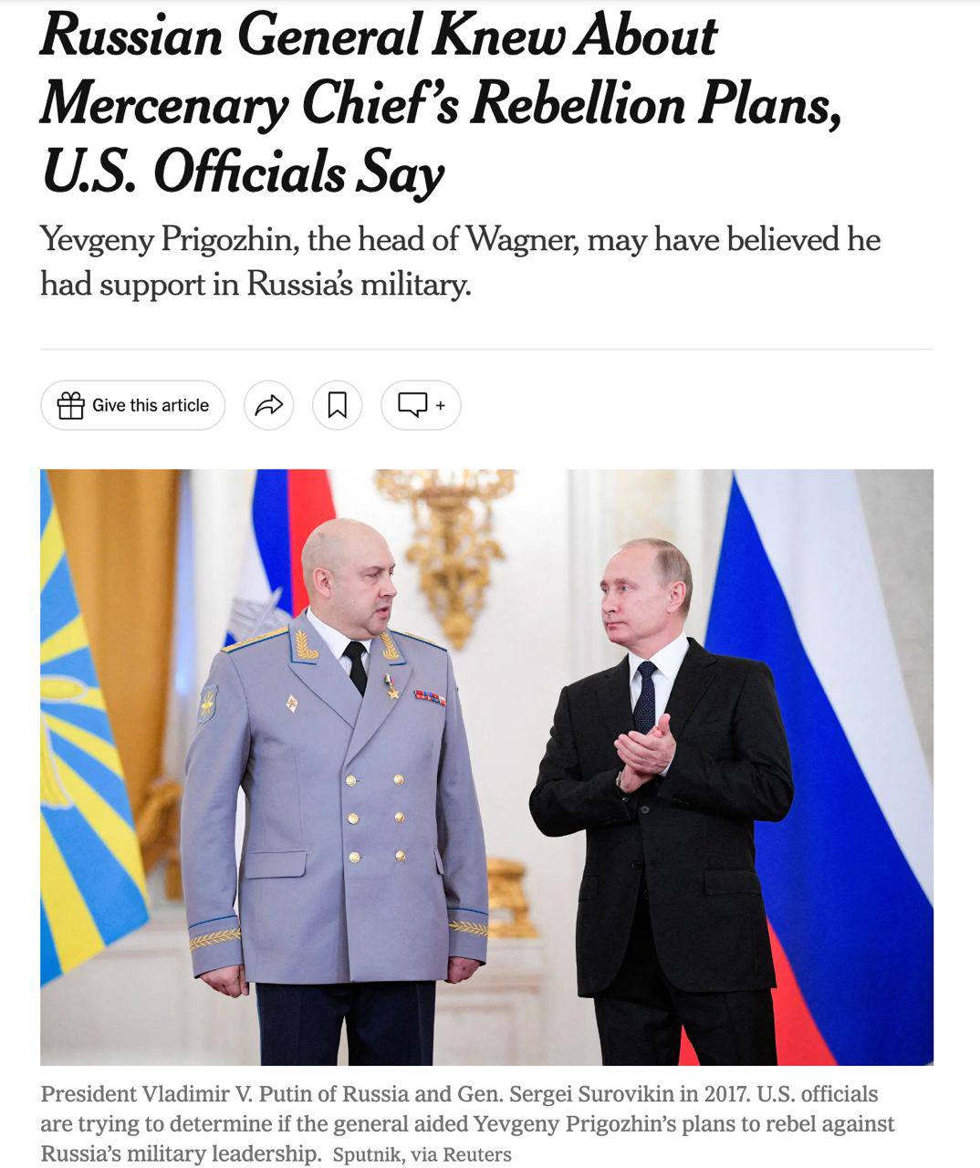 Сейчас американцы пытаются выяснить, не принимал ли Суровикин какое-либо участие в подготовке мятежа.