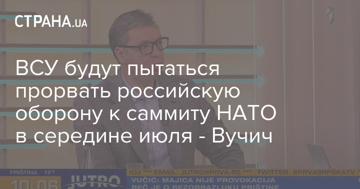 "Они ожидают, что получат "открытый билет" для членства в НАТО, и они уверены, что большим наступлением и ударом по российским силам могут это сделать", - сказал Вучич.