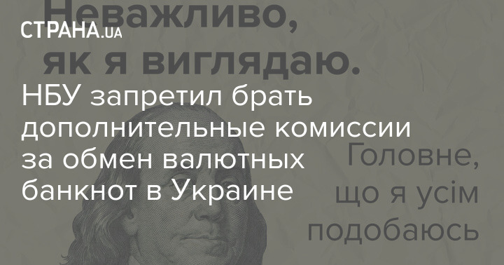 Национальный банк Украины (НБУ) запретил финансовым учреждениям страны брать с клиентов дополнительные комиссии за обмен валютных банкнот.