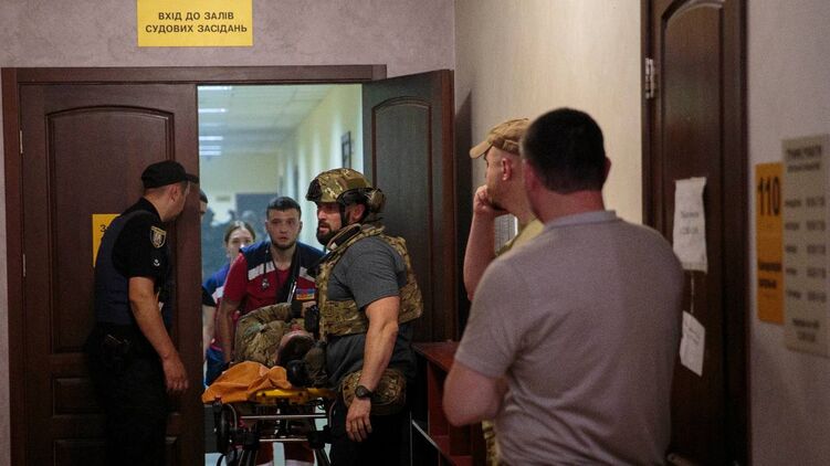 Правоохранители опубликовали кадры штурма Шевченковского суда, где обвиняемый Гуменюк подорвал гранаты. Фото: Нацполиция