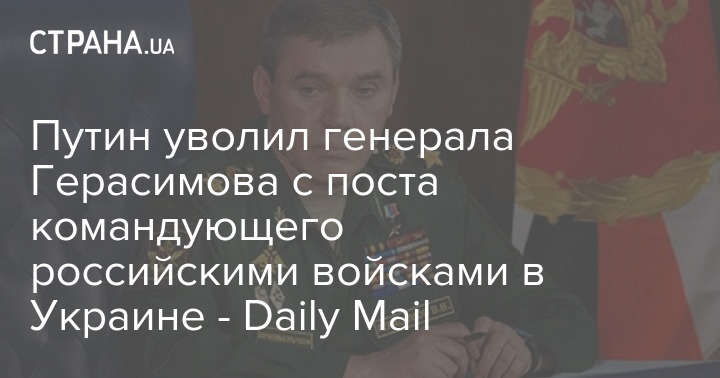 Президент РФ Владимир Путин уволил генерала Валерия Герасимова с поста командующего российскими войсками в Украине.