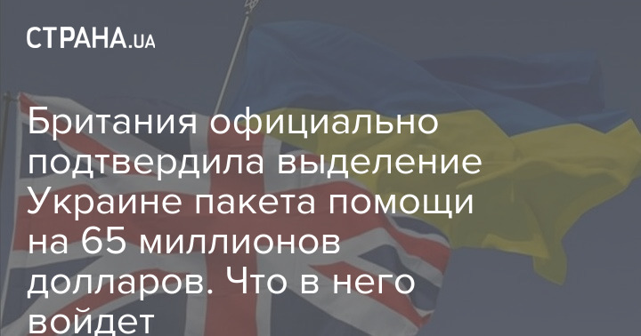 Великобритания подтвердила выделение Украине пакета помощи стоимостью 65 миллионов долларов.