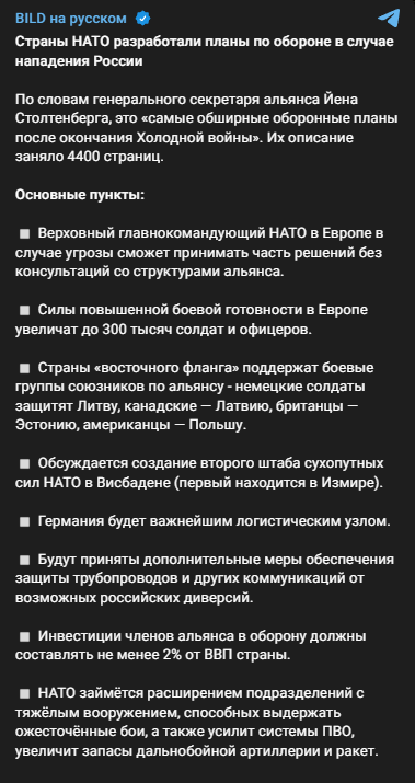 Немецкое издание BILD в своем телеграм-канале приводит основные пункты этого плана: