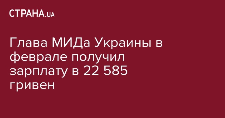 Заработная плата министра иностранных дел Павла Климкина за февраль составила 22 585,15 гривен. Об этом говорится в ответе Министерства иностранных дел на запрос "Украинских Новостей".