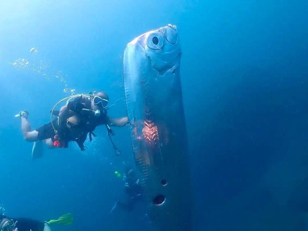 Близ Тайваня, у побережья Жуйфана дайверы встретили редчайшую глубоководную рыбу, которую называют рыбой Судного дня. Это рыба-ремень или "сельдяной король".