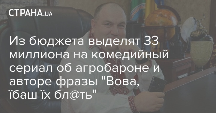 Из бюджета выделят 33 миллиона на комедийный сериал об агробароне и авторе фразы "Вова, їбаш їх бл@ть"