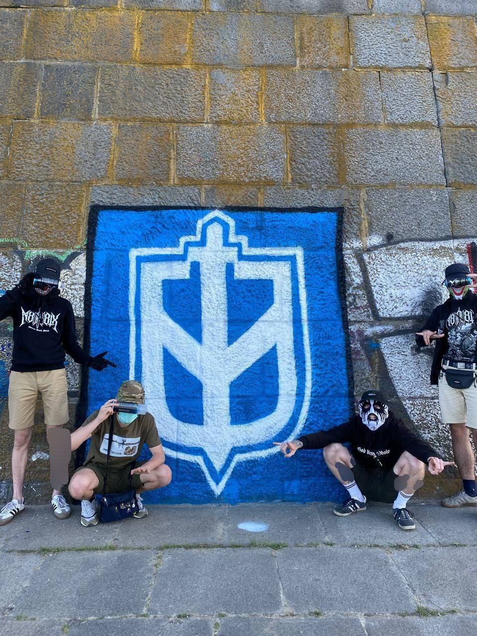 На набережной Днепра в Киеве представители воюющего на стороне Украины "Русского добровольческого корпуса" (РДК) нарисовали свою эмблему.