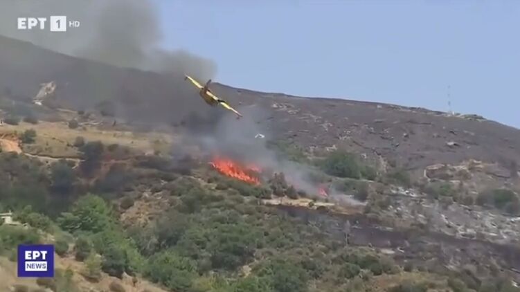 Тушение пожара на греческом острове. Скриншот EPT News