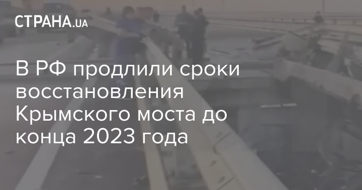 В России сообщили о продлении сроков восстановления Крымского моста с 1 июля 2023 года до 31 декабря 2023 года.