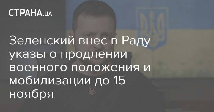 Зеленский внес в Раду указы о продлении военного положения и мобилизации до 15 ноября