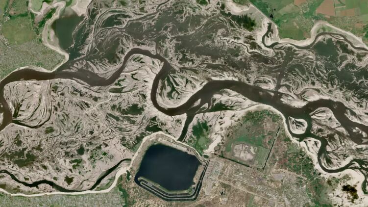 В конце прошлого месяца появились спутниковые снимки, наглядно показывающие масштаб обмеления Каховского водохранилища. Особенно низкий уровень воды возле Запорожской АЭС и Никополя. При этом в пруду-охладителе АЭС уровень воды пока достаточный.