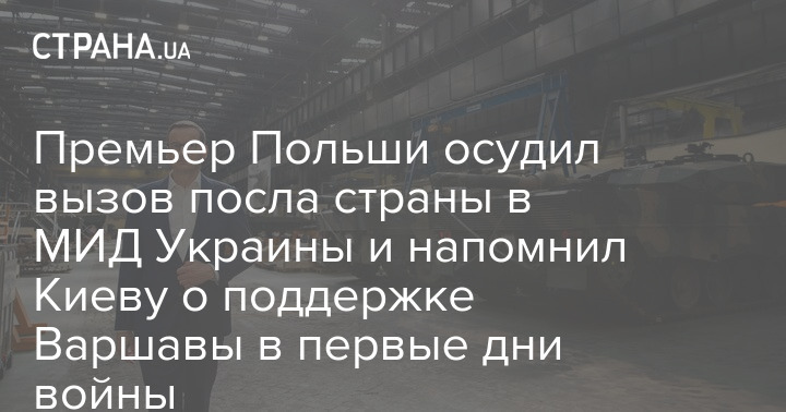 Премьер-министр Польши Матеуш Моравецкий раскритиковал решение Украины вызвать польского посла в МИД из-за высказывания Марчина Пшидача.