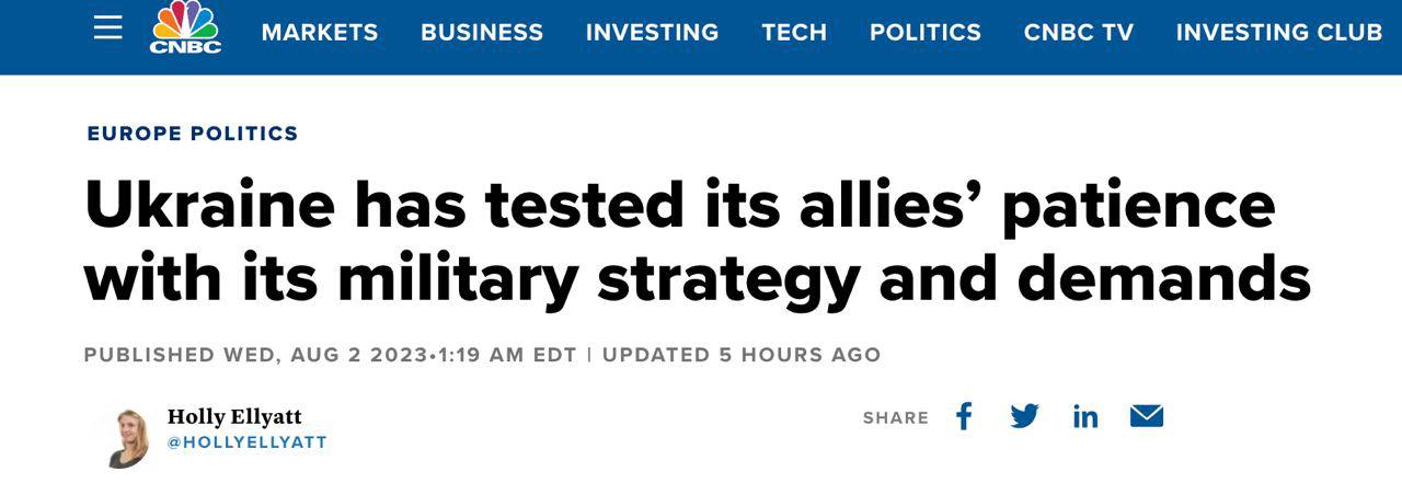 "Украина раздражает своих союзников не только на дипломатическом уровне. Военная стратегия Украины - и символическое значение, которое она придавала борьбе за каждую часть украинской территории - иногда вступала в противоречие с военной перспективой и прагматизмом ее союзников", - пишет издание.