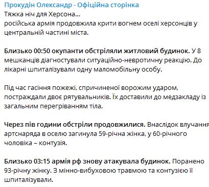 08:25 Ночью силы РФ обстреляли центральный район Херсона.