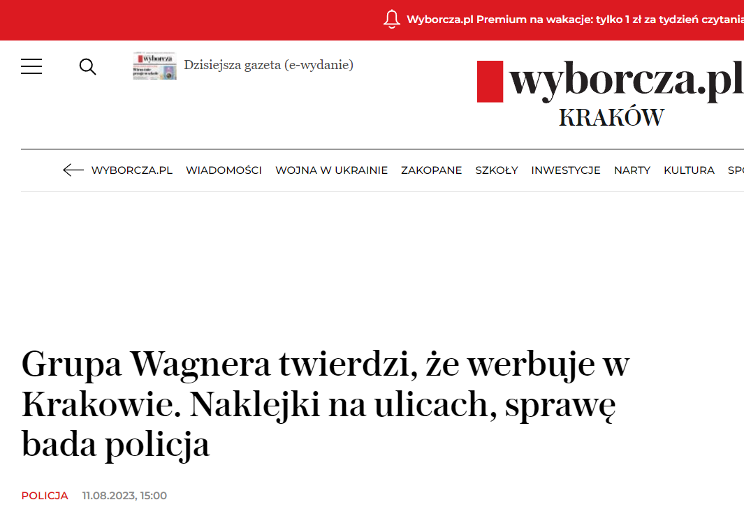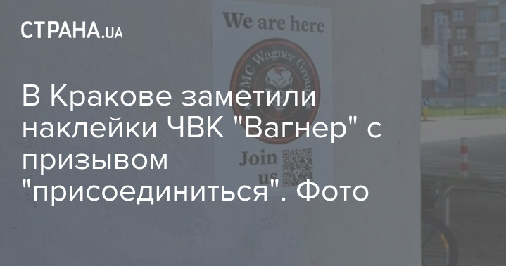 В Кракова местные жители обнаружили плакаты с российской ЧВК "Вагнер" на улицах города. На них размещены контактные данные ЧВК.