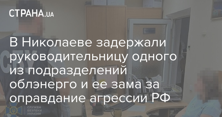 СБУ задержала в Николаеве руководительницу одного из подразделений облэнерго и ее заместительницу по подозрению в оправдании российской агрессии.