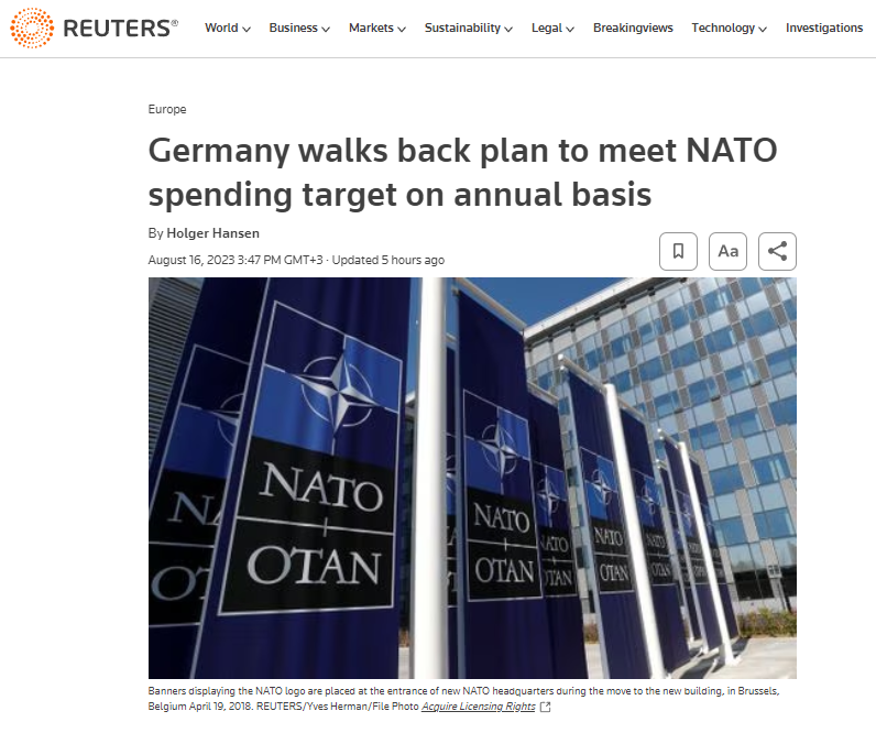В Германии отказались от повышения военных расходов до 2% ВВП по уставу НАТО - Reuters