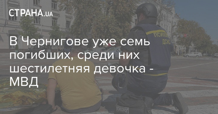 В Чернигове, где сегодня в полдень россияне ударили по центру города, число погибших возросло до 7. За медицинской помощью обратилось 90 раненых. Из них 10 полицейских и 12 детей. Госпитализированы 25 человек.