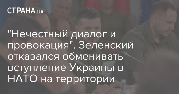 "Менять НАТО на наши земли – это нечестный диалог и провокация", - заявил Владимир Зеленский.