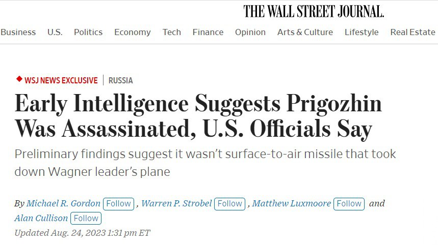 Разведка США считает, что куратор ЧВК "Вагнер" Евгений Пригожин действительно погиб в авиакатастрофе.