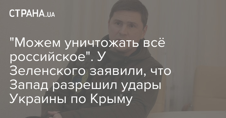 "Сегодня уже консенсус абсолютный относительно того, что мы можем уничтожать все российское, например, в Крыму. Я напомню, год назад даже когда какие-то удары были по Крыму, все говорили: "Нет-нет, давайте только без этого". Сегодня абсолютный консенсус тождественен количеству стран, которые нас поддерживают, что мы можем уничтожать все российское на оккупированной территории", - сказал Подоляк.