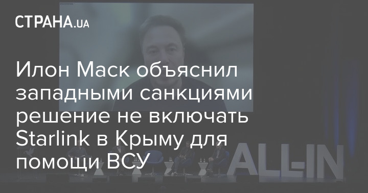 "Причина, по которой Starlink был выключен, в действительности была в том, что США ввели санкции против России. Они охватывают Крым, и нам не разрешено запускать соединение", — заявил Маск, выступая на технологической конференции All-In Summit.