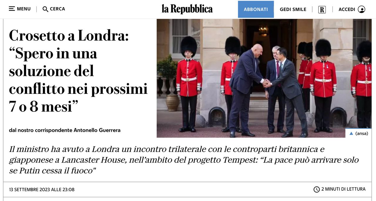 «Я надеюсь, что дипломатическое решение будет найдено в достаточно короткие сроки, в течение следующих семи или восьми месяцев. Это моя надежда», — заявил Гуидо Крозетто в комментарии la Repubblica.
