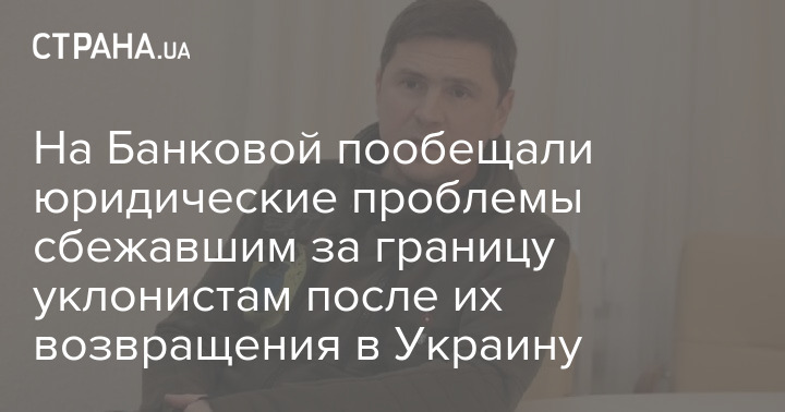 Советник главы Офиса президента Михаил Подоляк пообещал, что военнообязанные украинцы, скрывающиеся от войны за границей, после возвращения домой столкнутся с "юридическими проблемами".