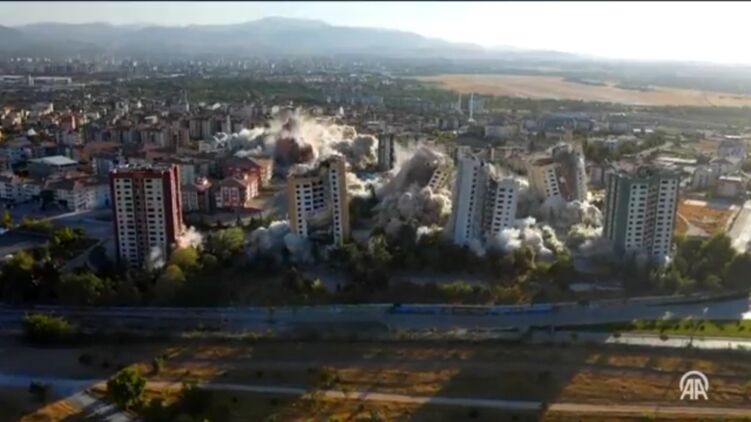 В турецкой провинции Малатья взрывами снесли девять 15-этажных домов, которые стали непригодными к проживанию после февральского землетрясения.